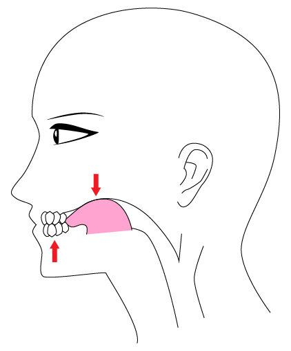 - La boca está cerrada, colocando la punta de la lengua contra el paladar justo en el nacimiento de la encía superior.